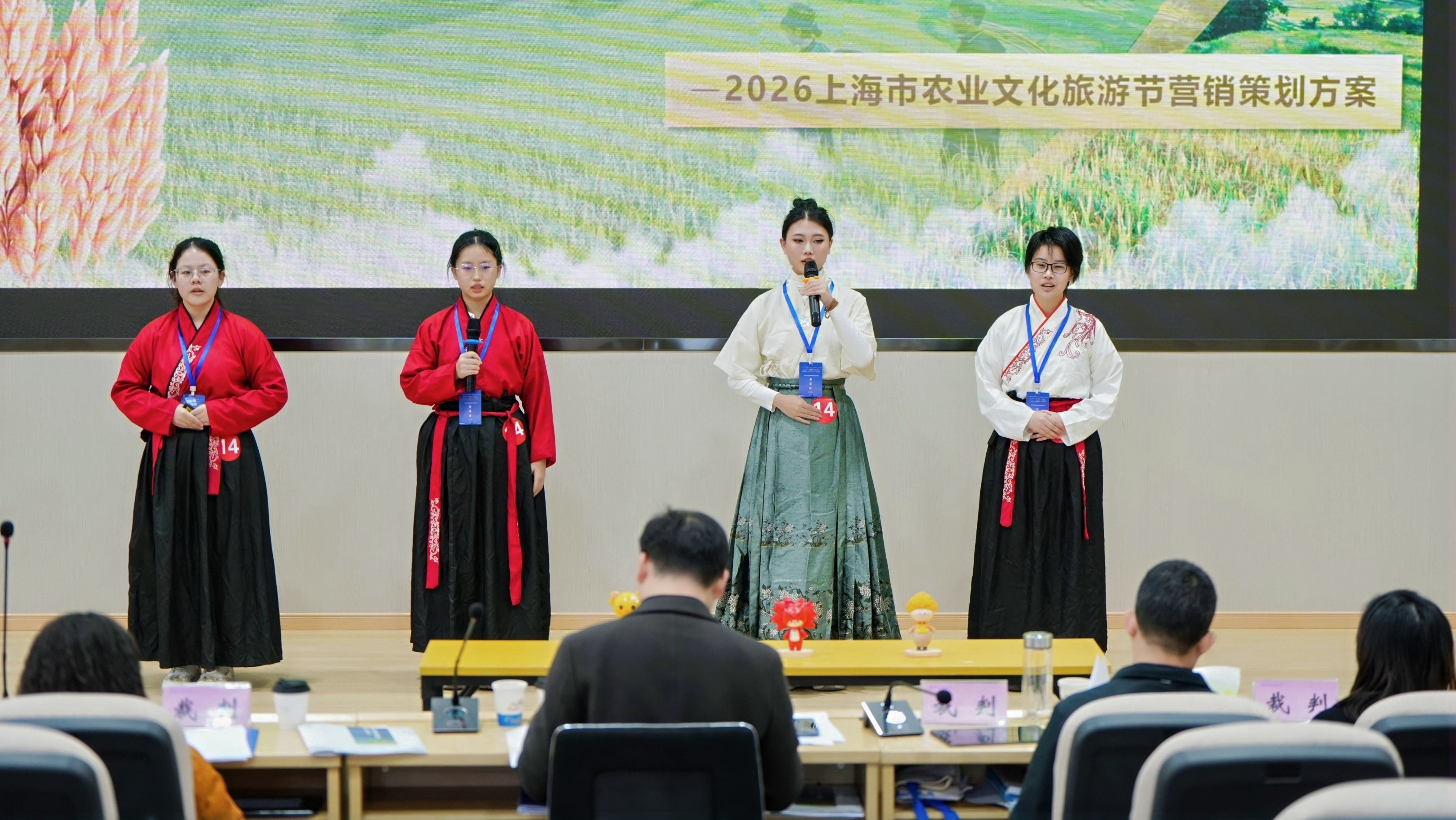 竞赛筹备阶段,团队展现出了极强的协作意识与攻坚精神,在两位指导老师的悉心指导下,队员们经过多次研讨,最终锁定“上海农业文化旅游节”作为策划核心,确立了以《数聚浦江田野,智焕申城乡韵》为题的参赛方案。既贴合长三角文旅融合发展趋势,又能将上海都市农业的特色与文化旅游深度结合,形成差异化竞争优势,同时融合数智技术与创新点。为确保方案质量,团队进行了科学严谨的分工,从文稿创作、市场调研、目标客群分析到活动流程设计,从演示文稿制作到文稿印刷排版,从路演稿撰写到模拟答辩,同学们以清晰的逻辑架构、生动的视觉呈现,将策划思路转化为文字、图片、视频、音频,力求在有限时间内精准传递方案亮点,突出主题,增强参赛可视性、可读性、可辨性。