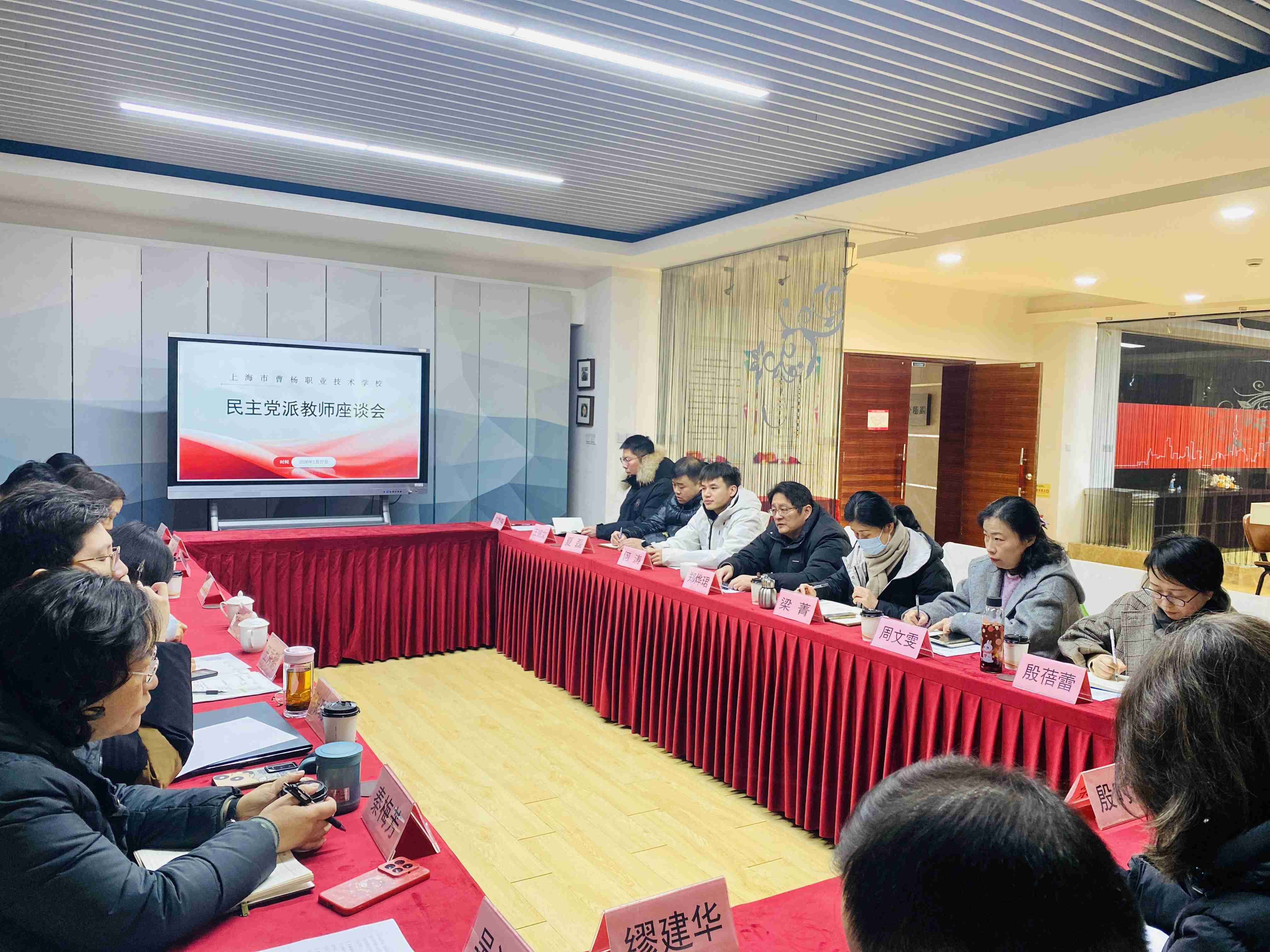 一元复始,万象更新。为坚持科学决策、民主决策,广泛凝聚智慧力量,共谋学校发展新篇章,2026年1月27日上午,上海市曹杨职业技术学校在会悟阁召开“2026年度民主党派教师座谈会”。会议以“十五五”规划为核心,聚焦专业群建设与教师队伍建设两大战略任务,校领导、部分职能部门负责人、民主党派教师齐聚一堂,共商发展大策,气氛热烈融洽,洋溢着凝心聚力、共创未来的责任感与使命感。