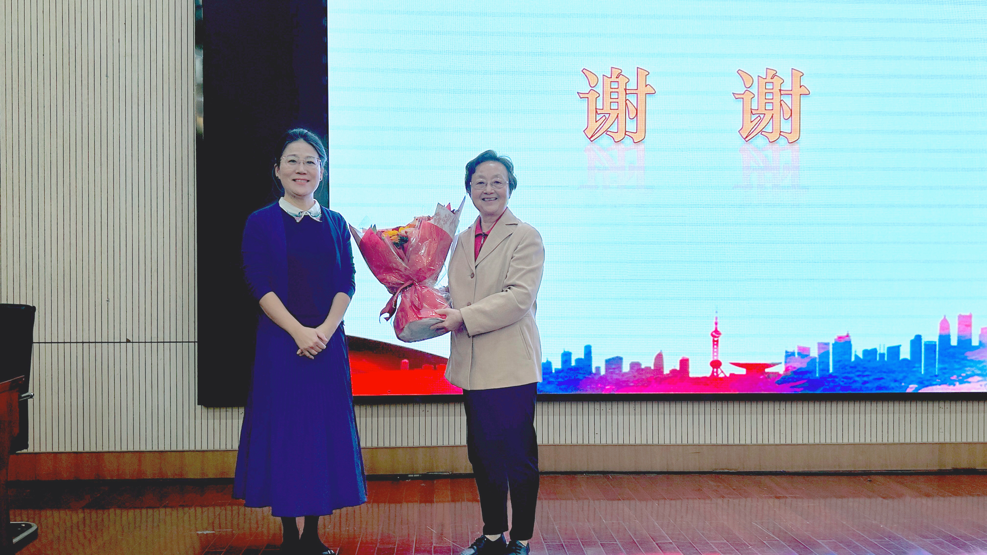 热烈的掌声中,此次讲座圆满落幕。陈蔚代表学校向叶红献上鲜花表示感谢。