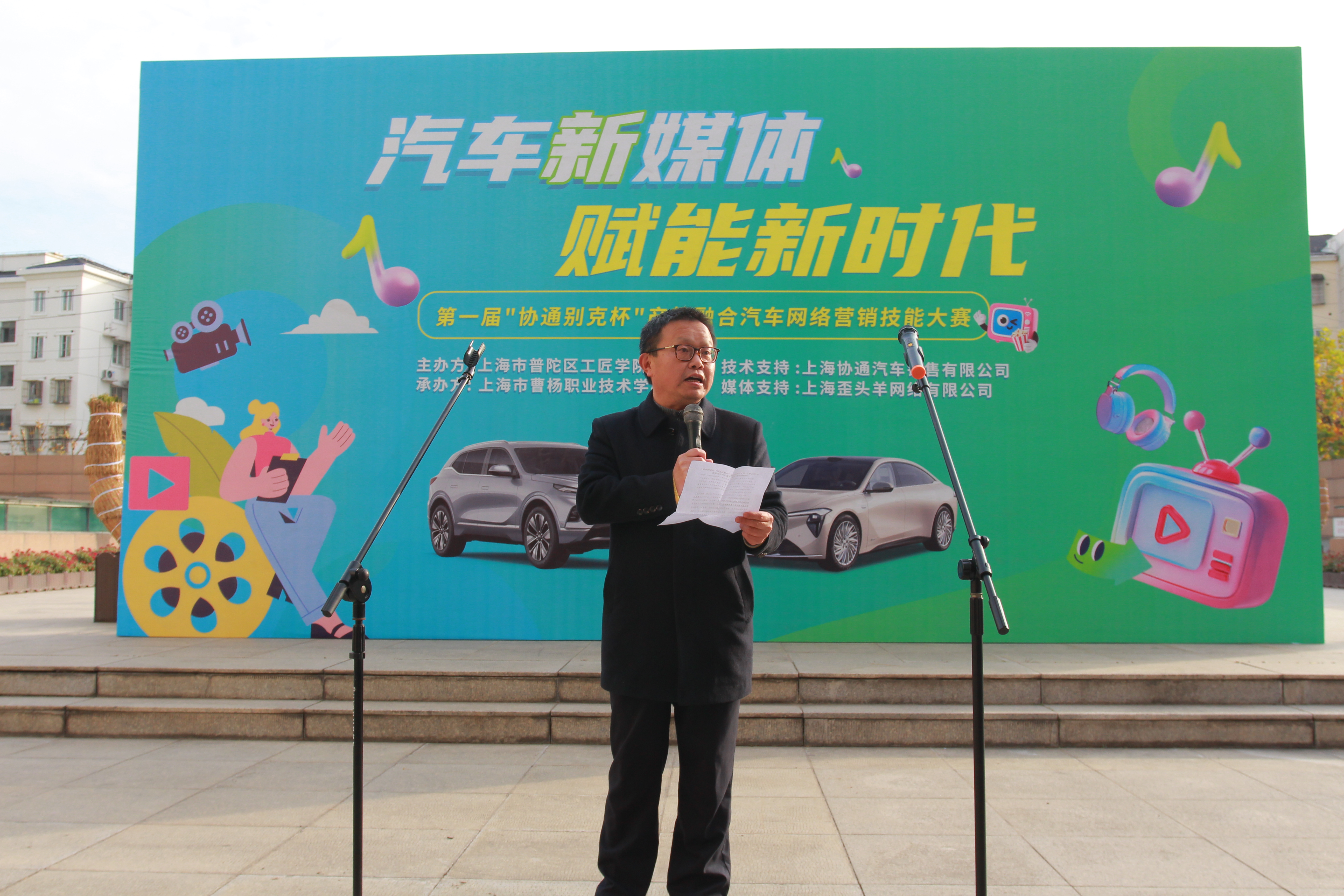 初冬时节,暖意融融。2025年12月4日,以“汽车新能源 赋能新时代”为主题的普陀区工匠学院第一届“协通别克杯”汽车网络营销技能大赛决赛在上海市曹杨职业技术学校1号楼展开。