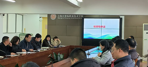 为深入贯彻落实立德树人根本任务,强化外聘教师队伍规范化建设,助力上海职业教育高质量发展,2026年3月1日下午,上海市曹杨职业技术学校召开外聘教师开学工作会议。党总支书记陈蔚、校长殷时余、副校长缪建华,督导室、教务处、人事处负责人,各专业部主任、相关教研组长及全体外聘教师齐聚一堂,共话育人使命,共商新学期教学工作。