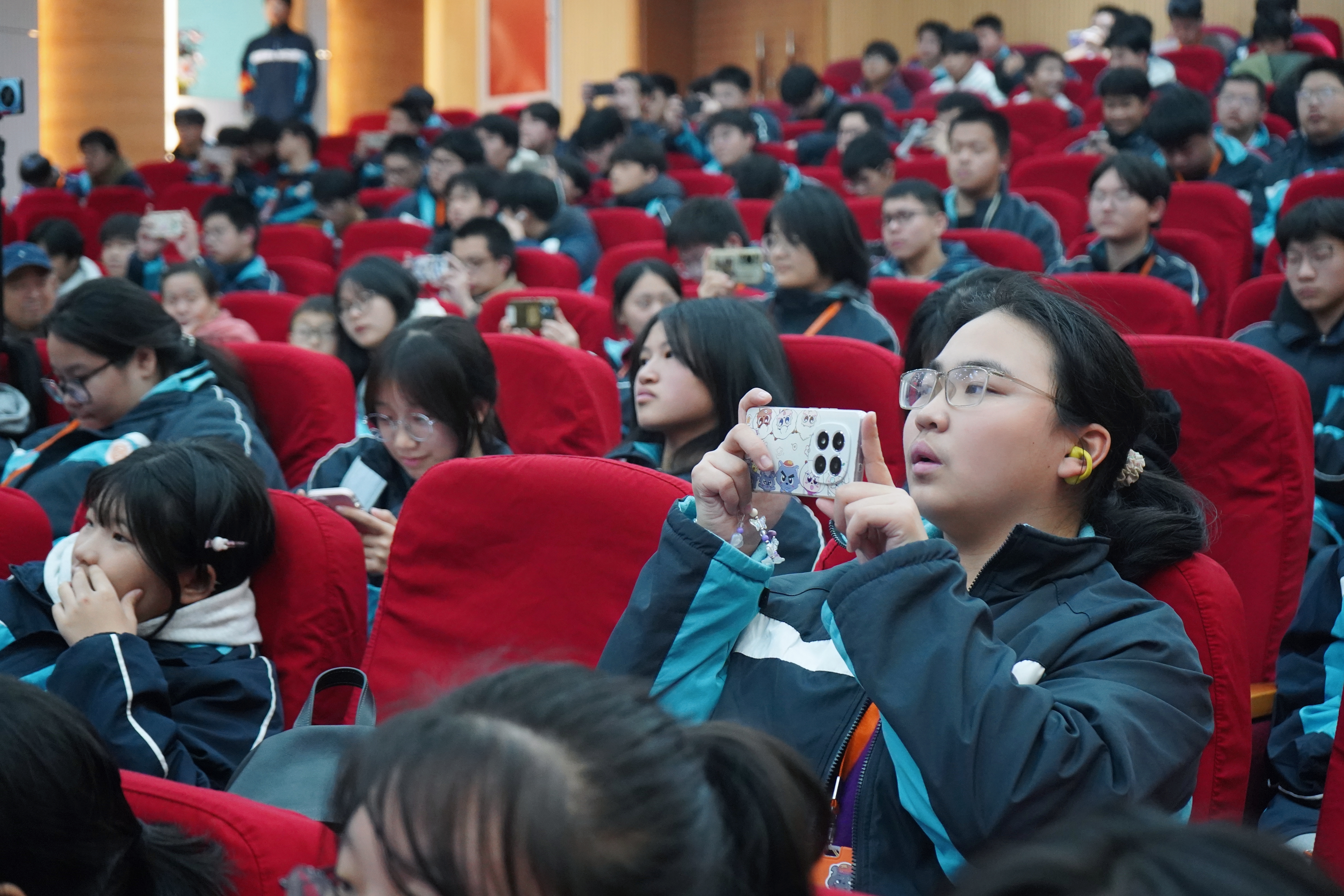 整场音乐会不仅是听觉的享受,更是一次生动的美育课堂。台下同学们展现出良好的艺术素养与观赏礼仪,他们专注聆听、热情互动,不少人悄悄举起手机,记录下一个个精彩瞬间。秩序井然之中涌动着青春的共鸣,音乐成为连接台上与台下、专业与业余、艺术与生活的无形纽带。