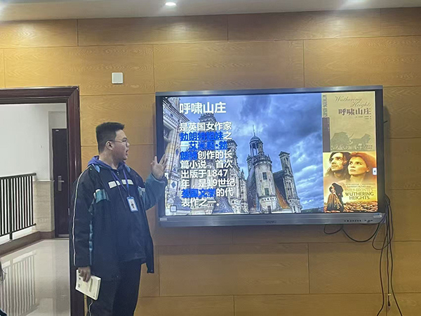 活动伊始,23酒店中高班的方展博同学带来《呼啸山庄》名著微讲解,为大家打开了经典文学的大门。方展博同学精心制作的PPT极具创新巧思,流畅的动画制作搭配契合的背景音乐,将听众迅速带入小说的故事氛围中,让人耳目一新。