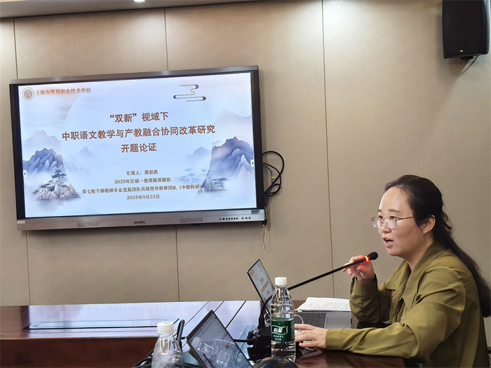 2025年9月23日,曹杨职校1402会议室内气氛热烈,一场聚焦中职教育高质量发展的课题开题论证会如期举行。会议由教务处副主任王秀鹏老师主持,出席开题论证的有2025年区级个人课题主持人白若寒、张淼淼、黄龙,2025年区级一般课题的主持人邵彩洪和课题组全体成员。会议由学校科研员盛蔚老师记录。