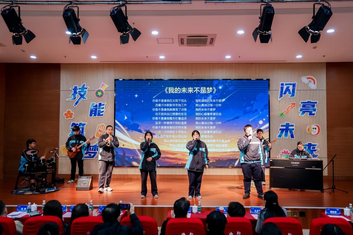 活动中,学生代表通过多种艺术形式展现了新时代职业教育学生精神风貌与青春活力,生动诠释了人工智能时代技能人才培育与创新驱动城市发展的使命与价值。