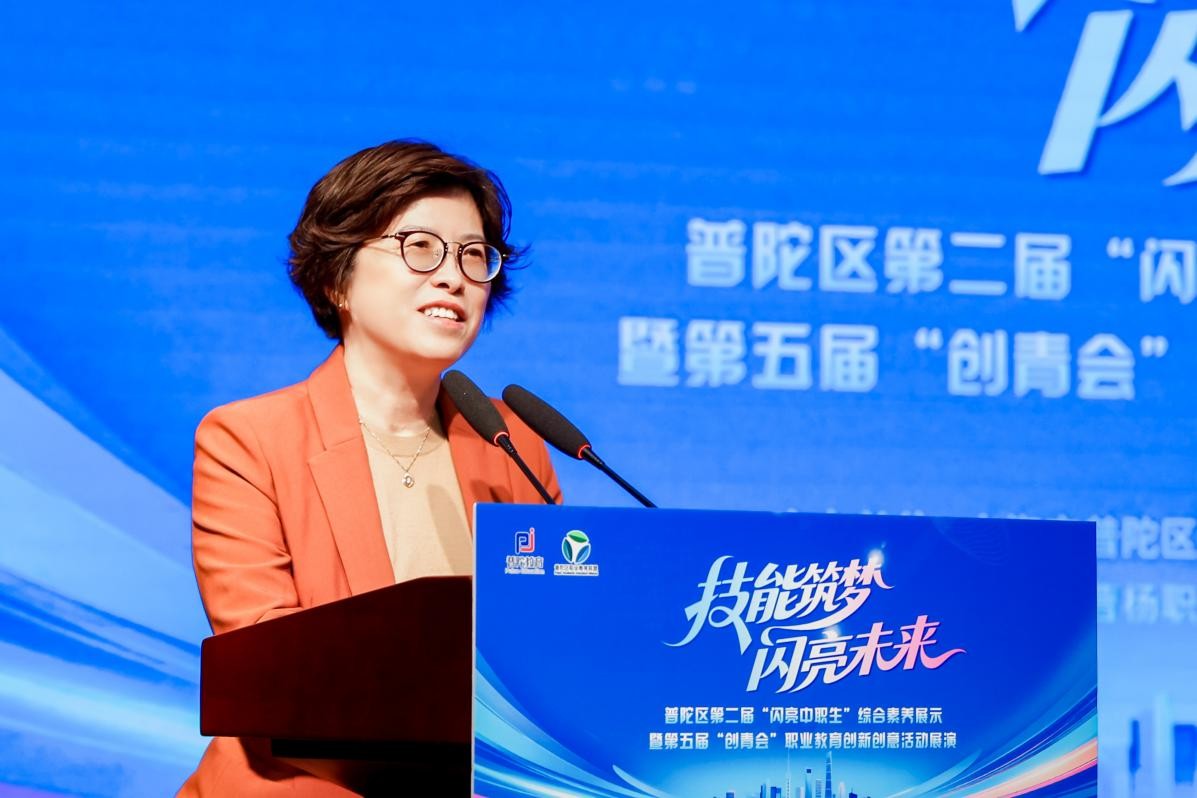 赵平表示,本次活动是普陀区积极贯彻落实上海市职业教育高质量发展行动计划,全面推进专业教育与素养教育协同并进的生动体现。她强调,在技术迭代加速、产业跨界融合的新时代,职业教育不仅仅是技术技能人才的摇篮,更是推动产业升级的重要力量,也是服务区域人力资源优化配置的战略支撑。未来,区域职业教育要继续紧密对接普陀区“十五五”重点产业发展方向,深化“融合”,在服务区域发展上展现新作为;要持续提升区域职教学生综合素养教育体系,聚焦“赋能”,在促进学生全面发展上探索新路径;要不断强化区职教联盟平台功能,聚焦“协同”,在构建高质量育人生态上实现新突破。职校学生要胸怀理想、锤炼技能,将个人成长融入区域经济和社会发展之中。