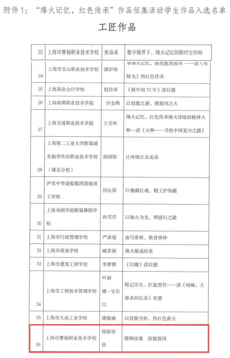 邱张恬恬的参赛之路,始于学校组织的各类红色主题活动。2025年上海市职业学校“赓续红色血脉・立志技能报国”主题读书活动启动后,她第一时间报名参与“大师微讲堂”,“大国工匠”与“科技创新”篇章中先辈们的坚守和创新精神,深深触动了她。随后,“烽火记忆,红色传承”作品征集活动开启,作为汽车工程专业学生,她结合研读的《抗战时期南京城市与建筑》,将历史感悟与专业理想融入征文,这成为她参赛的最初动力。