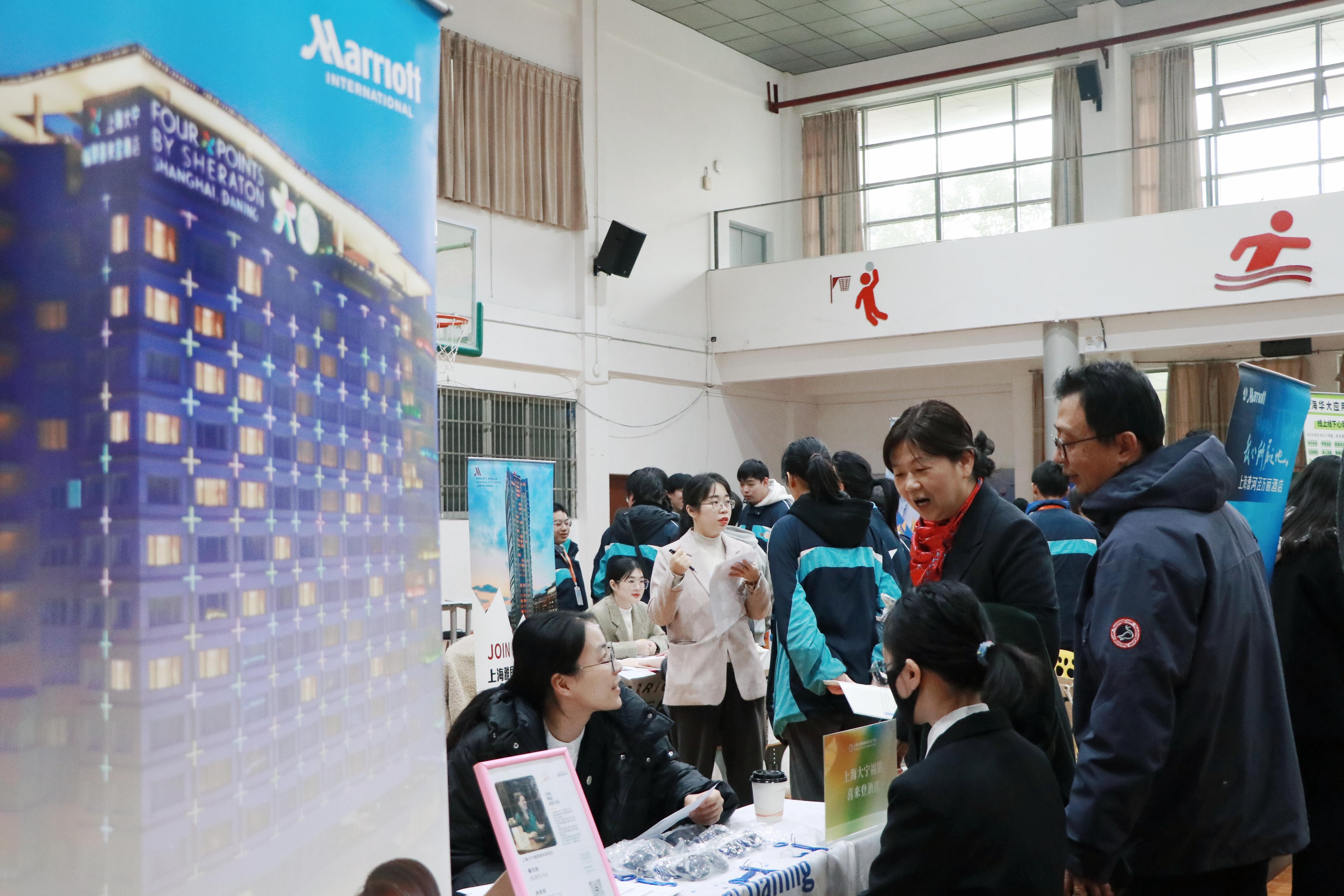 2025年12月23日,上海市曹杨职业技术学校体育馆内人头攒动,一场以“‘青’润启航 技通未来”为主题的2025年校园招聘会在此举行。这场招聘会不仅是校企对接的“双向奔赴”,更是曹杨职校践行职业教育理念、服务学生成长的生动实践,为270余名学生提供了520余个实习岗位,覆盖旅游服务、商贸会展、工程技术三大专业部,60余家行业企业参与其中,为学子们搭建起从校园到职场的桥梁。
