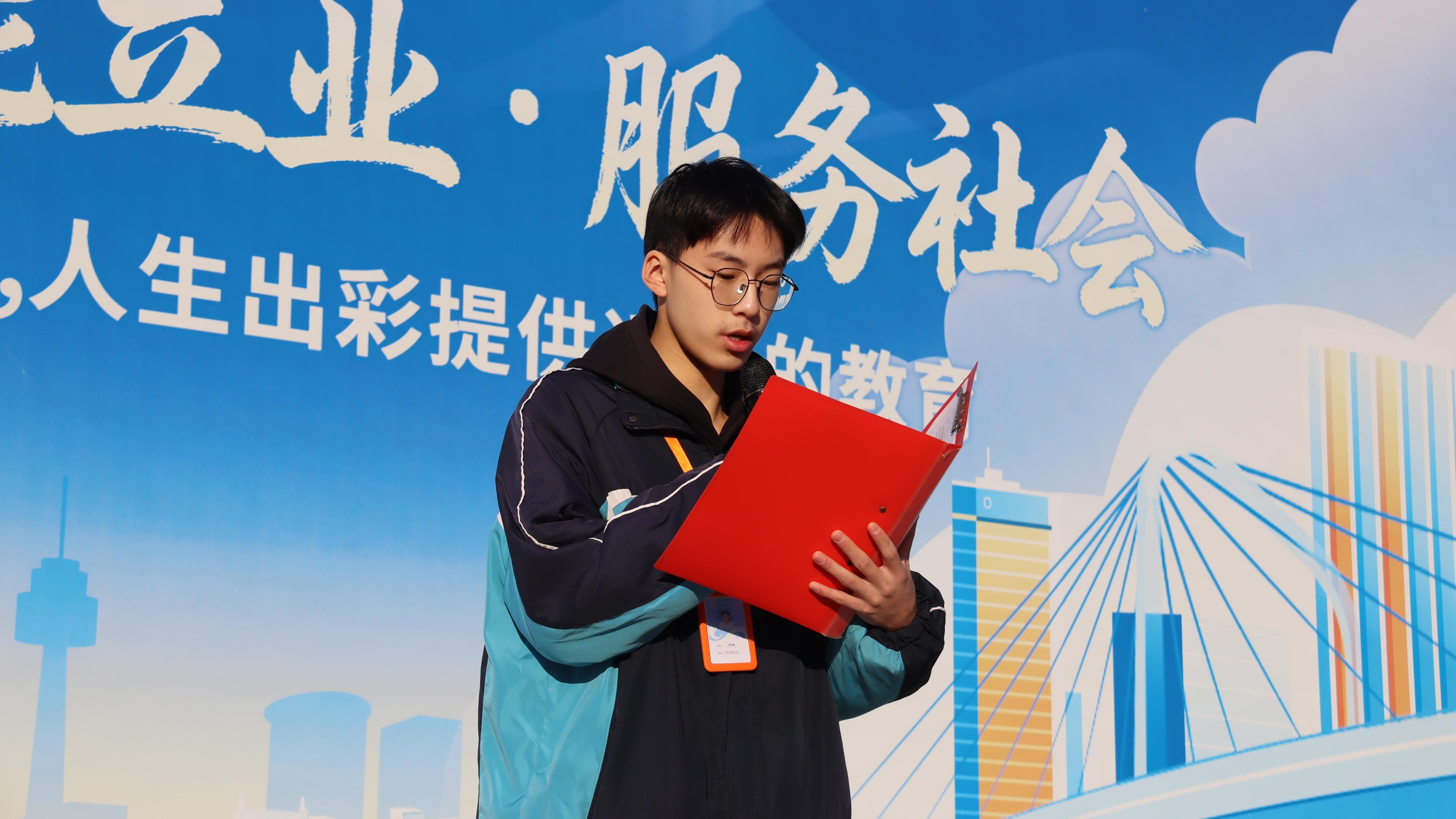 仪式在庄严的国歌声中拉开帷幕。来自24会展中高班的钱佳怡和顾呈隽两位同学主持了本次活动。对广大中职学生而言,娴熟运用笔头和镜头,不仅是展现专业素养的窗口,更是弘扬工匠精神、讲好新时代职教故事的重要方式。