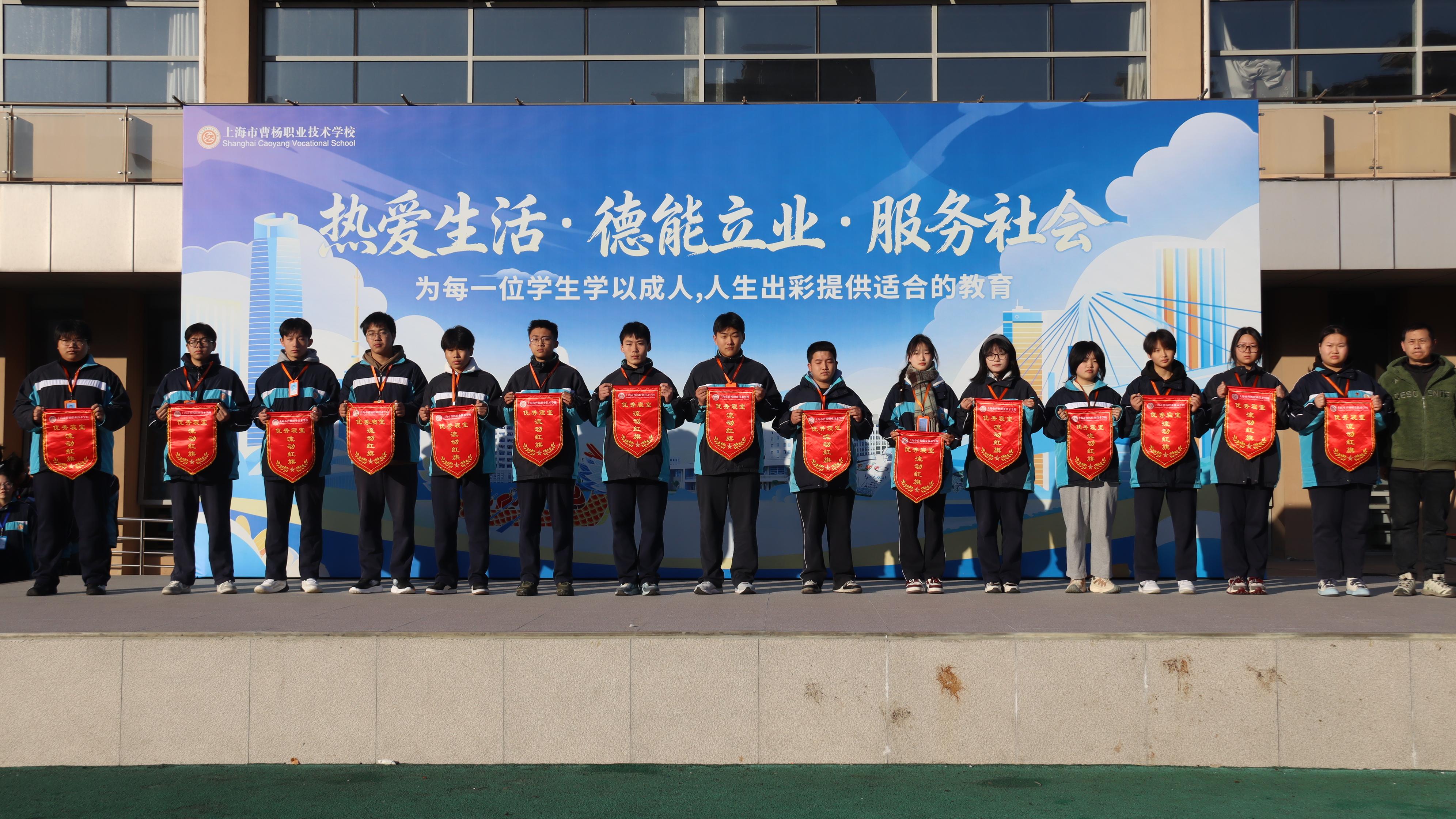 2025年12月15日上午,上海市曹杨职业技术学校隆重举行上海市“星光计划”第十一届职业院校技能大赛宣传专项颁奖主题升旗仪式,集中表彰在宣传赛道上涌现出的优秀个人和作品。