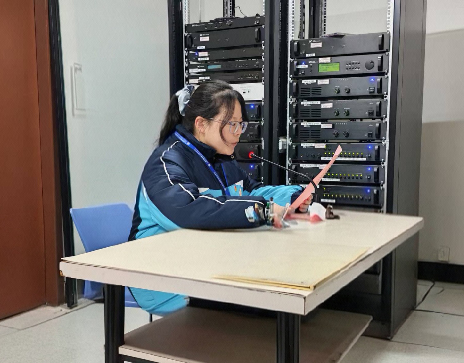 本学期,曹杨职校学子在各赛事中均大放异彩,为激励学生在技能成才的道路上砥砺前行,2026年1月5日上午8时,我校隆重举行第十九周“展技能风采,燃青春梦想”主题升旗仪式。受天气影响,本次活动通过校园广播在室内进行,全体师生于各班教室同步参与。