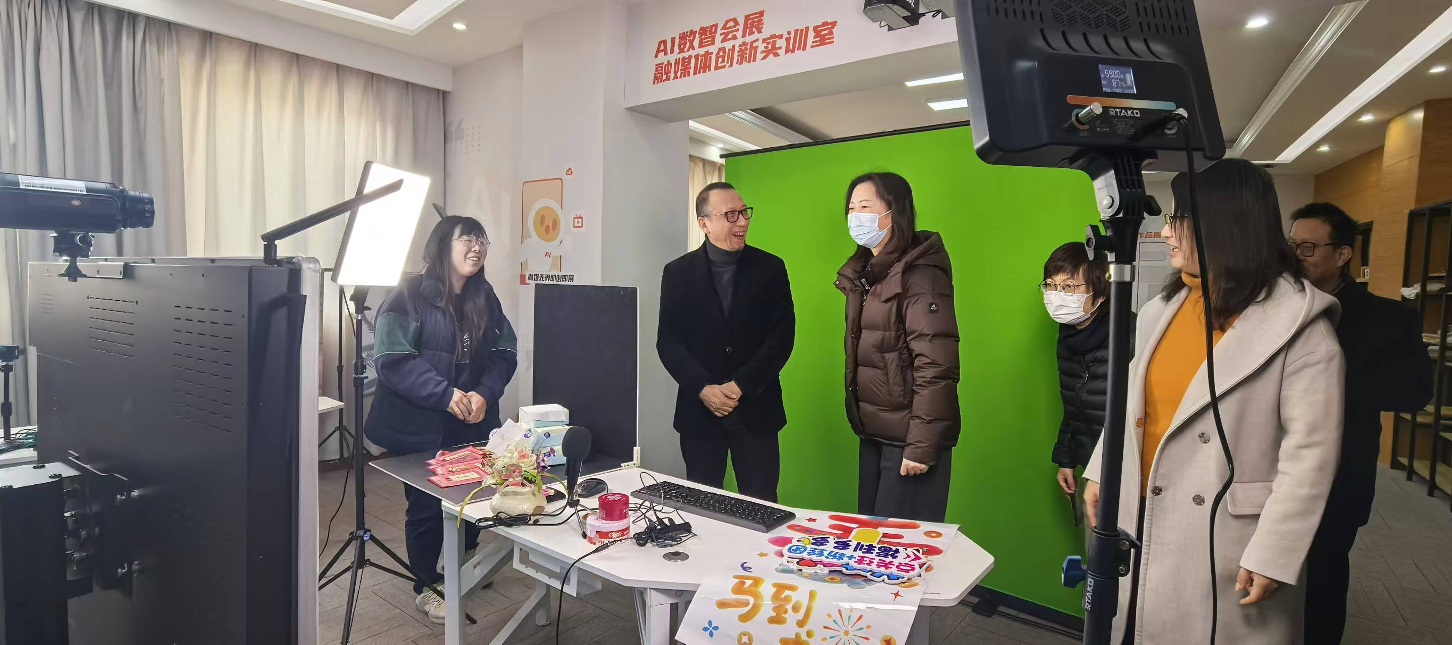 嘉宾一行首先来到汽车实训中心,实地考察汽车喷漆、车身修理2个世界技能大赛上海集训基地。工程技术专业部主任唐明斌向客人详细介绍了汽修专业实训室的建设情况与教学成果。在专业老师指导下,学生们熟练操作汽修设备,分组完成学习任务,秩序井然。随后,商贸会展专业部主任张艳带领嘉宾参观数智会展实训中心,重点介绍了和直播实训室的和文创产品制作实训室建设与使用情况。嘉宾们对学生真实直播训练和各种各样的学生文创产品很感兴趣。学生现场向嘉宾介绍了校园文化文创产品的设计意图。