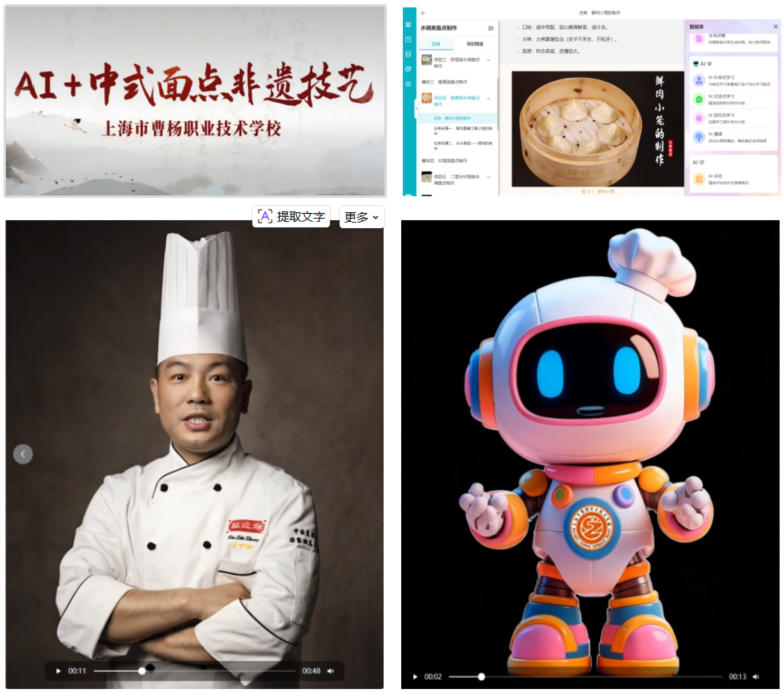 在近期举办的职业院校电子信息类教师2025年“产教融合·AI 数智赋能”人工智能技术应用与教学创新交流展示活动中,上海市曹杨职业技术学校凭借出色的项目成果脱颖而出,其中《鲜肉小笼的制作》与《农博会直播产品场景效果图的设计与制作》两个项目均荣获“一等奖”,且《鲜肉小笼的制作》还额外斩获了特别荣誉奖“最佳产教融合奖”。