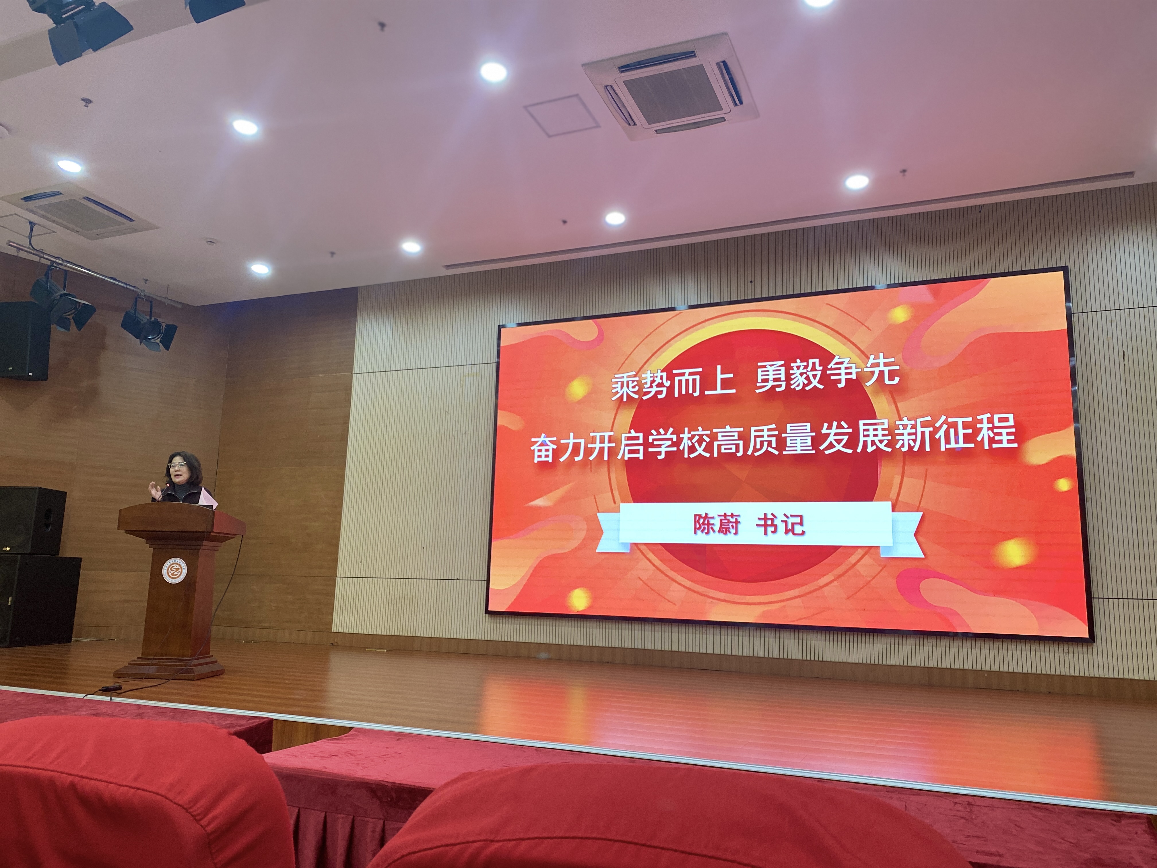 2026年1月30日上午,曹杨职校在多功能报告厅召开学期末全体教职工大会,校长殷时余与党总支书记陈蔚先后发言,总结2025年工作、分析发展形势、部署寒假任务,为“十五五”新征程凝聚共识。