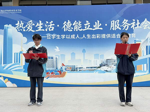 2026年3月23日上午,上海市曹杨职业技术学校举行“缤纷社团绽风采,科创筑梦向未来”主题升旗仪式,表彰在社团活动、科技创新表现突出的集体与个人,激励全校学生在技能与创新的道路上勇毅前行。仪式由来自25新能源2班的孙俊熙和23会展中高班的周纪萱两位同学共同主持。在庄严的国歌声中,五星红旗冉冉升起。全体师生肃立行注目礼,共同感受青春脉搏与时代的同频共振。